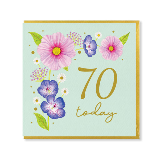 The Gift BarnCelebrate a 70th birthday in style, with this mint green card, featuring hand-painted flowers and delicate gold foil details. Comes with a metalli...